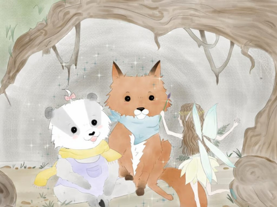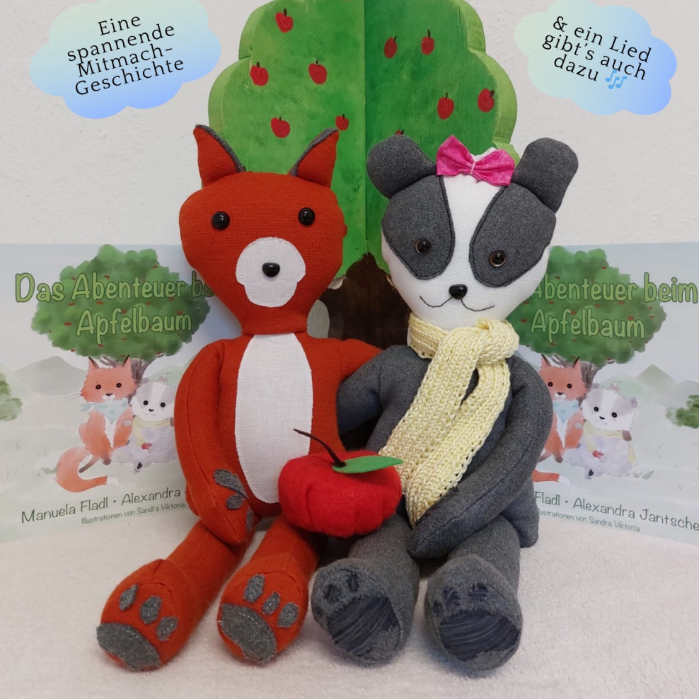 Die kleine Ella Dachs und ihr bester Freund Alex Fuchs erleben zusammen ein spannendes Abenteuer beim Apfelbaum.